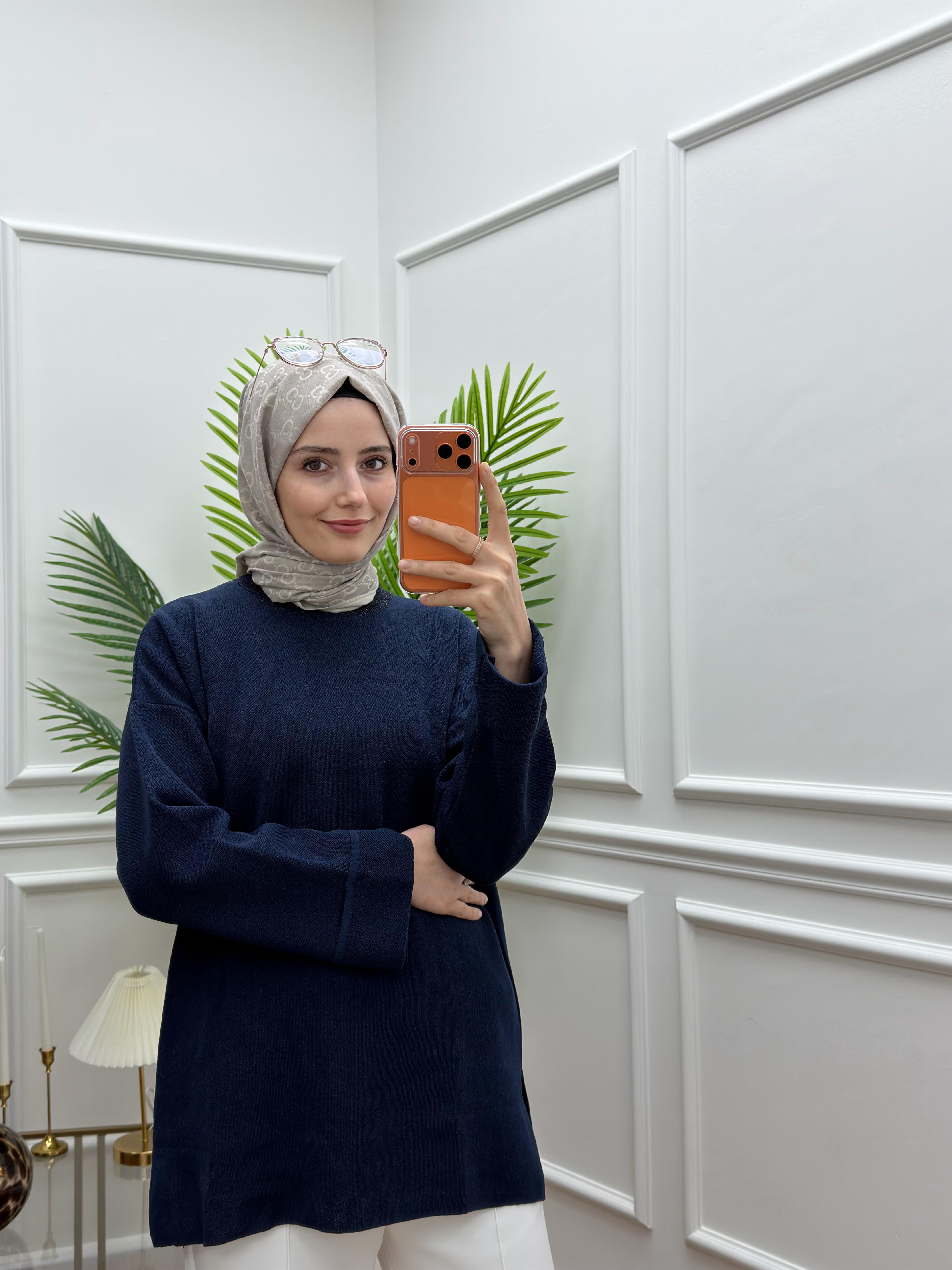 İnce triko kendinden sim ipiklerle dokunmuştur.